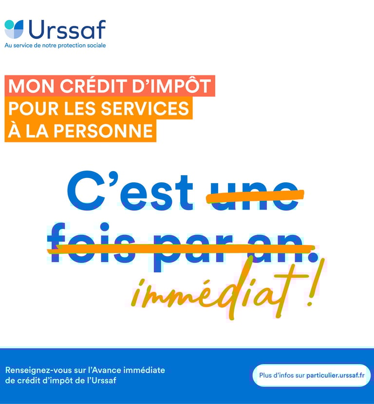 L’avance immédiate est un service gratuit et optionnel, proposé par l’Urssaf en partenariat avec la Direction Générale des Finances Publiques. Il permet de déduire immédiatement le crédit d’impôt de 50 % du montant de vos cours à domicile.